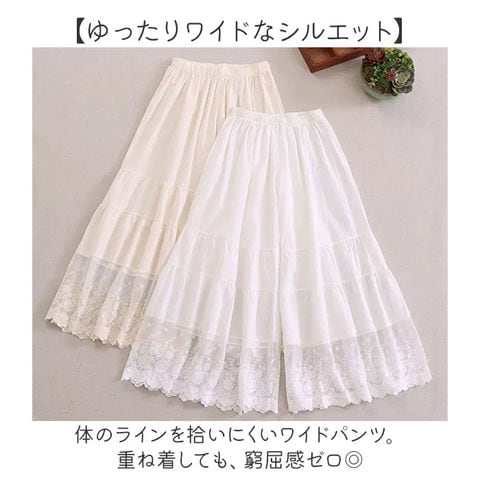 | 商品説明 | 【レイヤードでおしゃれ上級者♪】丈の長いシャツやワンピースの下に忍ばせるだけ!差をつけた着こなしがキマる「ぺチパンツ」。【大人可愛い、上品な甘さが魅力】ナチュラルな風合いの生地に、繊細なレースをプラス。甘くなりすぎず、大人女子にぴったり♪【締めつけ感がなくストレスフリー】伸縮性のあるウエストゴム仕様で、自分サイズにフィット。着脱もラクチン。【ゆったりワイドなシルエット】体のラインを拾いにくいワイドパンツ。重ね着しても、窮屈感ゼロ◎【サラッと軽く、負担をかけない】さらりと軽やかなコットン素材。薄手の生地感で、汗ばむ季節もムレにくい!【動きを妨げずアクティブシーンにも】足さばきもスムーズなパンツタイプ。足にまとわりつきにくいのも、嬉しいポイント。【違和感なく馴染むカラーリング】合わせるアイテムを選ばない、ベーシックカラー。透け感もおしゃれにガード。 |
