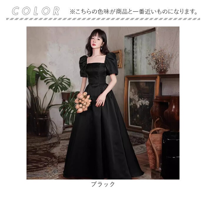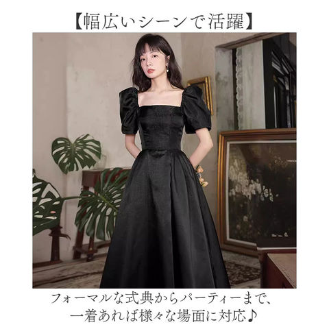 | 商品説明 | 【純黒で魅せる大人ドレス】シンプルなのにエレガント、特別な日を彩る一着。【女性らしさ引き立つ設計】スクエアネックとパフスリーブで、デコルテラインを美しく見せるシルエット。【バックスタイルまで美しく】編み上げデザインで後ろ姿までこだわり抜いた、キレイ見えを叶える仕様◎【幅広いシーンで活躍】フォーマルな式典からパーティーまで、一着あれば様々な場面に対応♪【快適な着心地を実現】胸パッド付きで美しいバストラインをキープ、長時間の着用もOK! |