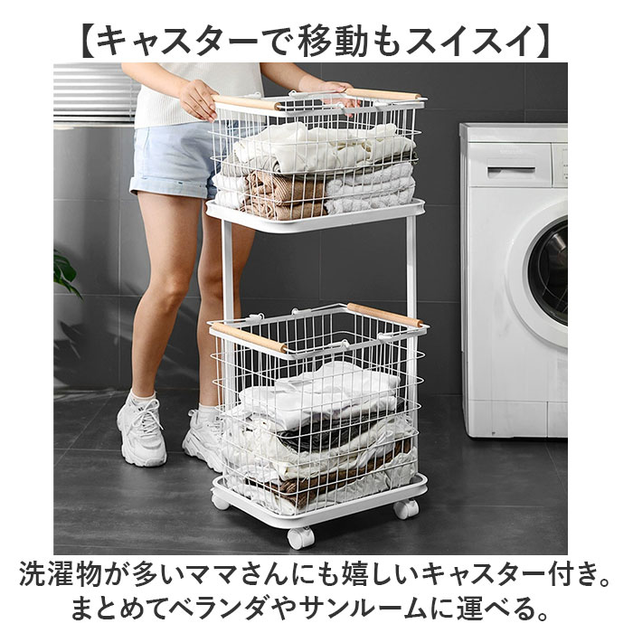 ランドリーバスケット キャスター付き 2段【ホワイト】