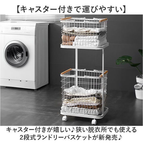 | 商品説明 | 【キャスター付きで運びやすい】キャスター付きが嬉しい♪狭い脱衣所でも使える2段式ランドリーバスケットが新発売♪【デッドスペースを有効活用】・2段式にすることで、上の空間を活用。狭い脱衣所内でも種類で分別可能なのが魅力。【キャスターで移動もスイスイ】洗濯物が多いママさんにも嬉しいキャスター付き。まとめてベランダやサンルームに運べる。【通気性に優れたバスケット】バスケットタイプで通気性に優れているので、カビの増殖やニオイの発生を抑える◎【取り出しや持ち運びもしやすい】バスケットはどちらもハンドル付きなので取り出しや持ち運びもスムーズに。【まとめてINできる大容量】上段と下段合わせて約56Lと大容量。家族みんなの洗濯物がまとめて入るのもポイント。【丈夫なスチールフレーム】湿気が多い水回りでの使用も安心なスチール製。丈夫で長く使える♪ |