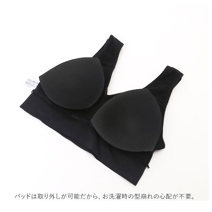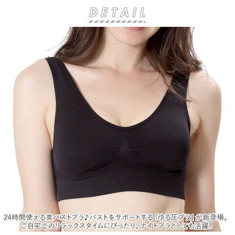 | 商品説明 | ・24時間使える美バストブラ♪バストをサポートする「ゆる圧ブラ」が新登場。締めつけ感のないノンワイヤー仕様だから、長時間の着用もストレスフリー◎アウターに響きにくい、シンプルなつくり。サラッとした肌触りでムレにくく、オールシーズン快適!バストを心地よくサポートしてくれる3D構造。バストの揺れを抑え、横流れを防止する脇高設計。伸縮性があり、身体のラインに心地よくフィット。パッドは取り外しが可能だから、お洗濯時の型崩れの心配が不要。幅広ストラップで、肩に食い込みにくいのも嬉しいポイント。ご自宅でのリラックスタイムにぴったり。ナイトブラとしても活躍! |