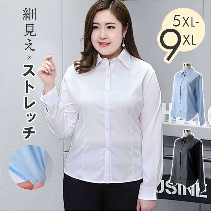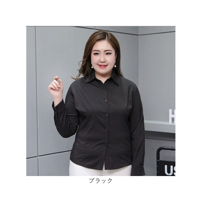 シャツ 大きいサイズ ストレッチ長袖【ブラック】【6XLサイズ】