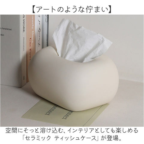 | 商品説明 | 【アートのような佇まい】空間にそっと溶け込む、インテリアとしても楽しめる「セラミック ティッシュケース」が登場。【コロンと愛らしいフォルム】ぽってりと丸みを帯びた形がかわいらしく、置くだけで優しい空気をまとえる存在感。【マットな質感が大人っぽい】落ち着きのあるマット仕上げで、ナチュラルなインテリアとも好相性!控えめなツヤ感も魅力。【インテリアに自然になじむ】無駄のないシンプルなデザインだから、リビングや寝室などどこに置いても映えるアクセント。【ティッシュがすっぽり収まるサイズ感】ソフトパックの小さめティッシュに対応。生活感を抑えた、さりげない気配りもうれしいポイント【底面フェルトで家具にやさしく】底には保護フェルト付き。キズ防止と安定感を兼ね備えた設計で、ギフトにもおすすめ◎ |