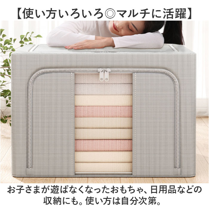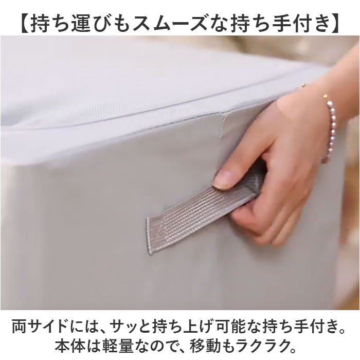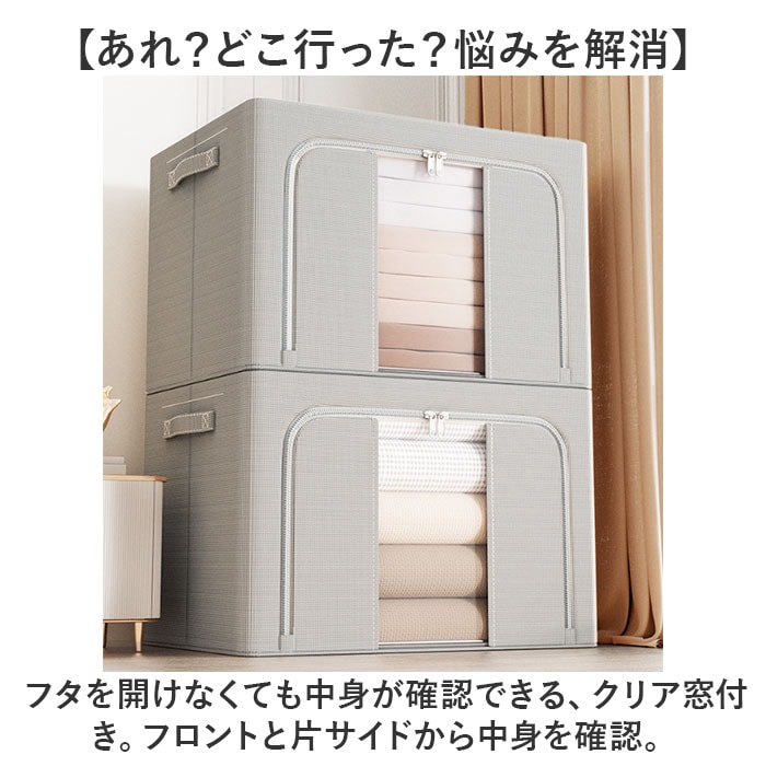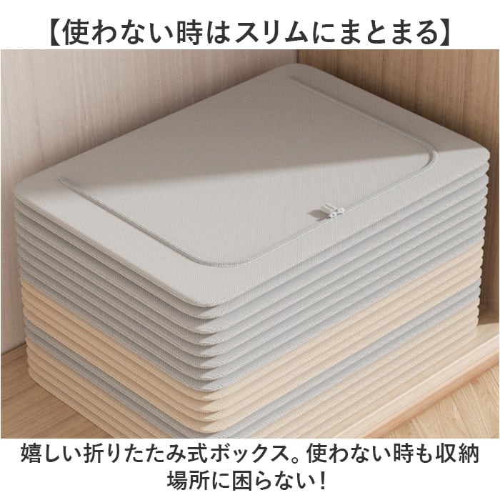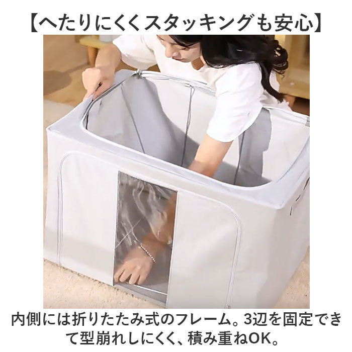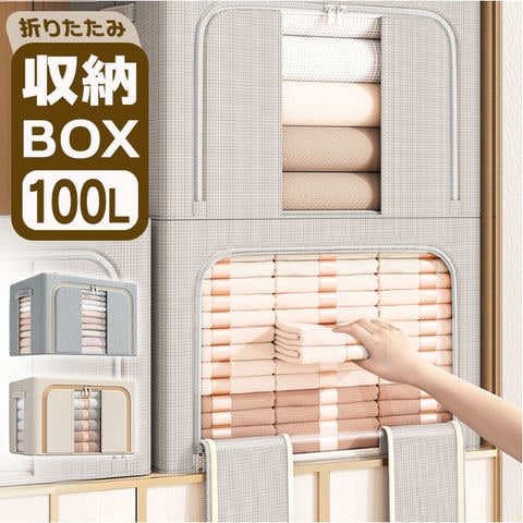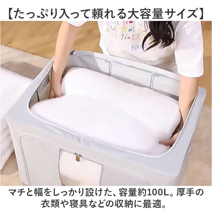 | 商品説明 | 【かさばりがちなアイテムの収納に】すっきり整理整頓できて、すぐに取り出せる♪大容量の「折りたたみ式収納ボックス 」。【たっぷり入って頼れる大容量サイズ】マチと幅をしっかり設けた、容量約100L。厚手の衣類や寝具などの収納に最適。【あれ?どこ行った?悩みを解消】フタを開けなくても中身が確認できる、クリア窓付き。フロントと片サイドから中身を確認。【大きく開いて便利な2面開口】・2つの開口部を配置。ぐるっと開くダブルファスナー式で出し入れも手間取らない!【へたりにくくスタッキングも安心】内側には折りたたみ式のフレーム。3辺を固定できて型崩れしにくく、積み重ねOK。【持ち運びもスムーズな持ち手付き】両サイドには、サッと持ち上げ可能な持ち手付き。本体は軽量なので、移動もラクラク。【丈夫で長く使える素材】本体は耐久性と耐摩耗性に優れた、オックスフォード素材。【使い方いろいろ◎マルチに活躍】お子さまが遊ばなくなったおもちゃ、日用品などの収納にも。使い方は自分次第。【押入れやクローゼットの片付けに】衣類などをまとめたら、そのままクローゼットへ。衣替えもあっという間に完了。【使わない時はスリムにまとまる】嬉しい折りたたみ式ボックス。使わない時も収納場所に困らない! |