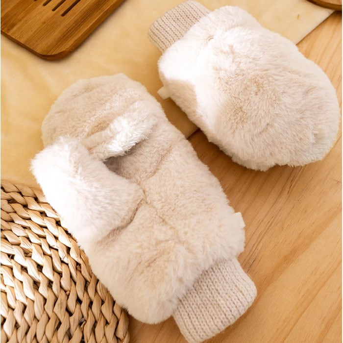 手袋 指なしレディース 2way かわいい【アイボリー】