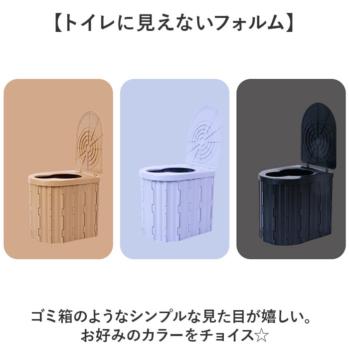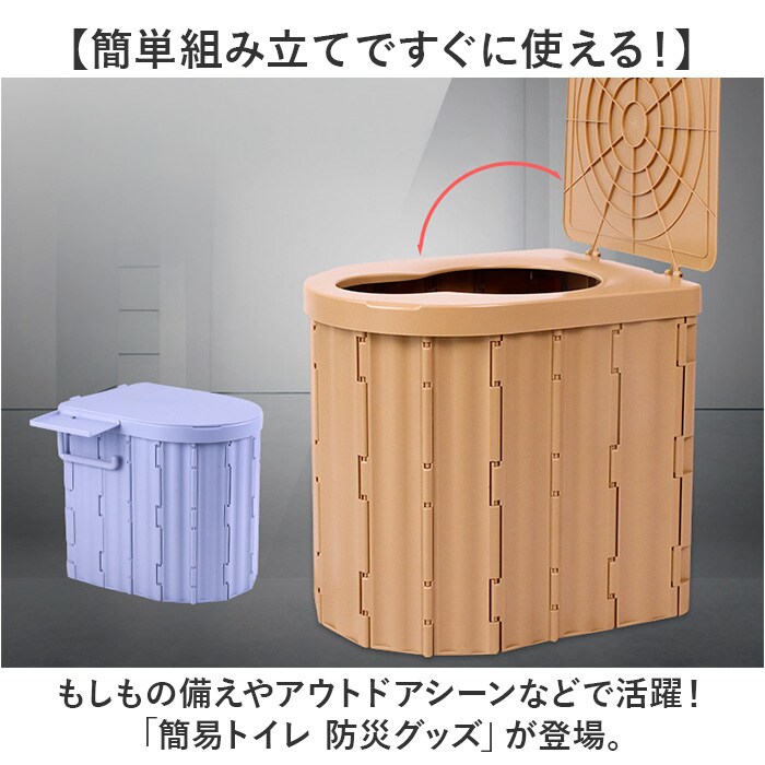 | 商品説明 | 【簡単組み立てですぐに使える!】もしもの備えやアウトドアシーンなどで活躍!「簡易トイレ 防災グッズ」が登場。【便座一体型のポータブルトイレ】いつものトイレのような使い心地の便座一体型タイプ。家族みんなで安心して使える♪【座りやすい高さがポイント◎】よくある簡易トイレより、やや高めの作り。座りやすいから、ご年配の方もラクに使える。【災害時以外にも大活躍!】災害時はもちろん、断水や渋滞の車内、アウトドアや釣りなどでも◎介護用トイレにも使える。【収納袋つきでコンパクト】置き場所を取らず、持ち運びもしやすい収納袋つき。組み立ても簡単なのがポイント。【ペーパーホルダーつき!】サイドにトイレットペーパーホルダーを取り付け可能。スマホなどを置けるトレイ仕様◎【どこにでも設置できる】避難所やテント内、自宅や車内など、どこでも設置できる便利さがGOOD。【トイレに見えないフォルム】ゴミ箱のようなシンプルな見た目が嬉しい。お好みのカラーをチョイス☆ |