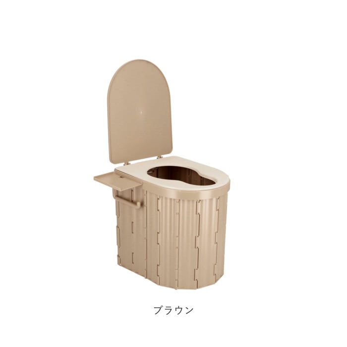 簡易トイレ 防災グッズ 折り畳み式 ペーパーホルダーソフト便座【ブラウン】