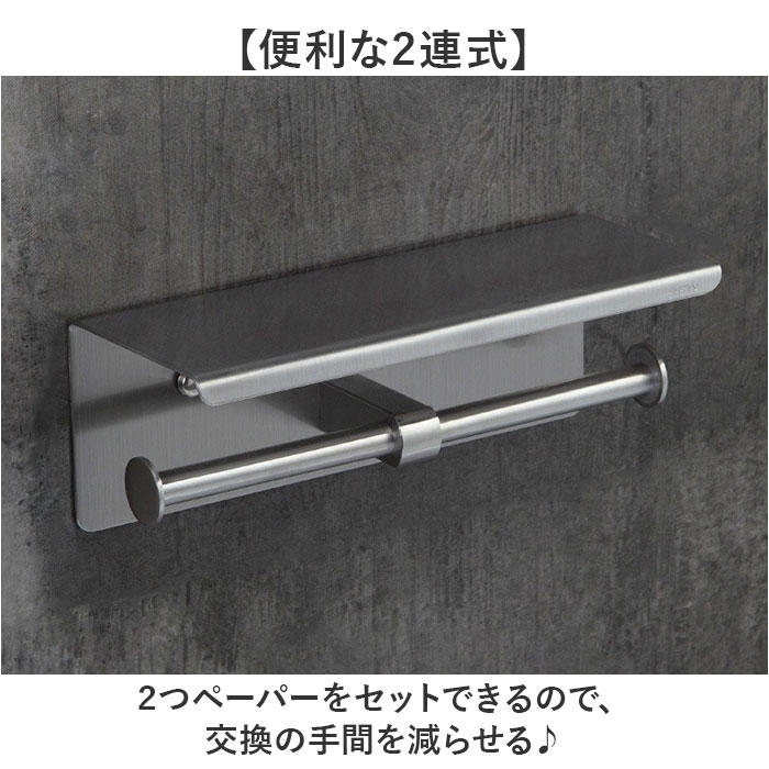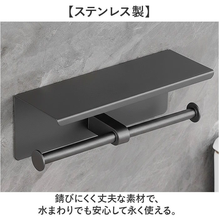 | 商品説明 | 【ストックも置ける】どんなインテリアにもなじみやすいシンプルで使いやすい2連式ペーパーホルダー。【便利な2連式】2つペーパーをセットできるので、交換の手間を減らせる♪【天板付きで便利】小物を置けるスペースがあるから、スマホや時計の一時置きにも◎【ステンレス製】錆びにくく丈夫な素材で、水まわりでも安心して永く使える。【落ちにくい構造】ペーパーがするっと落ちない設計で、ストレスフリー〇【安全な丸み加工】角を丸くした優しいデザインで安心して使える! |