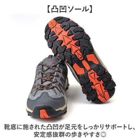 | 商品説明 | 【タフな履き心地が魅力】アウトドアや登山などで大活躍☆トレッキングシューズが登場。【しっかりした作り◎】がっちりしたアウトソールは耐久性に優れていて安心!【凸凹ソール】靴底に施された凸凹が足元をしっかりサポートし、安定感抜群の歩きやすさ◎【洗えるインソールで清潔】インソールは取り外しOK。いつでも気軽に洗えるので清潔さをキープできる。【軽やかに歩く】軽量設計だから長時間歩いても足が疲れにくく、アクティブな一日を楽しめる履き心地! |