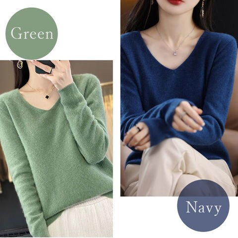 ニットセーター ウール 柔らかい【ネイビー】【Lサイズ】