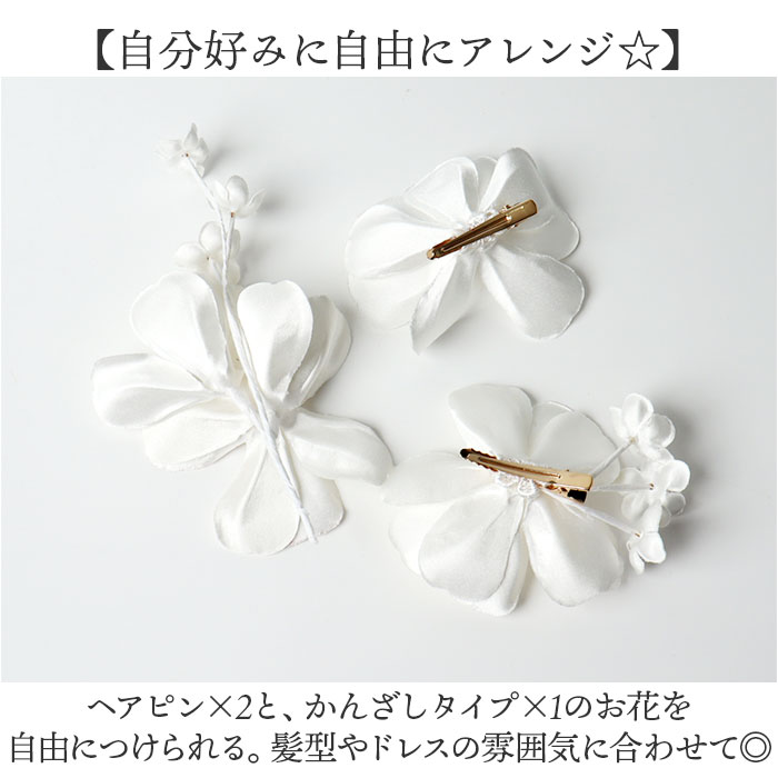 | 商品説明 | 【立体フラワーで上品&華やかに♪】アレンジ自在なヘアピンとリボンのセット「ウェディングアクセサリー」が登場。【自分好みに自由にアレンジ☆】ヘアピン×2と、かんざしタイプ×1のお花を自由につけられる。髪型やドレスの雰囲気に合わせて◎【なめらかなリボンで気品をプラス】ホワイト仕様のリボンつき!巻いたり垂らしたりして、より華やかさをUP!【いろんな髪型に対応できる】ロングもショートもお任せの自由度!全部つけてゴージャスに、ひとつ選んで洗練された印象に♪【ゴールドパーツが大人っぽい】ウエディングドレスはもちろん、お色直しや二次会、お呼ばれスタイルにもマッチ。 |