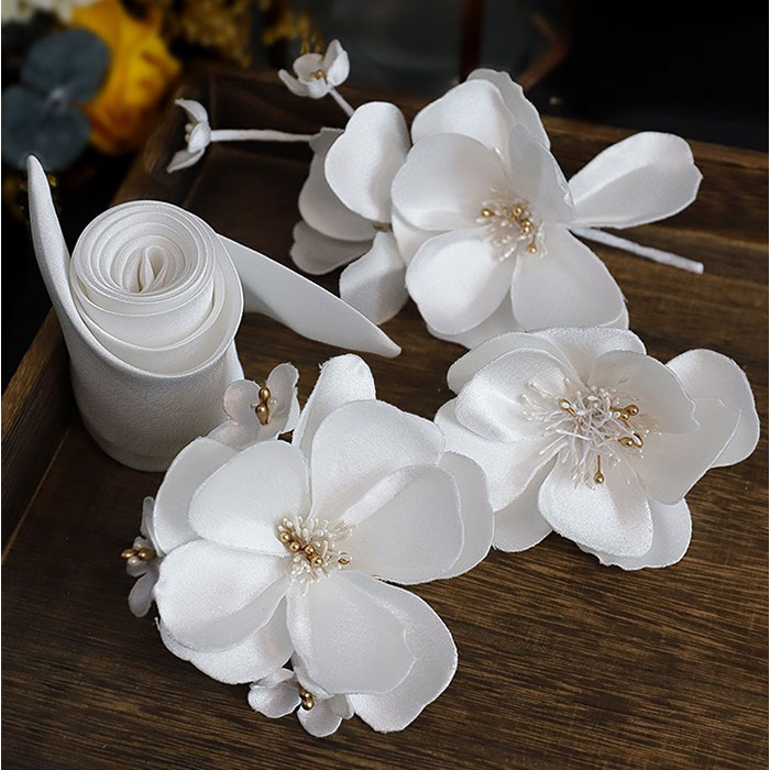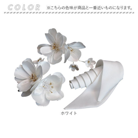 | サイズ | ・花のサイズ [縦]約16cm/[横]約11cm ・花(小さい花付きクリップ)のサイズ [縦]約11cm/[横]約10cm ・花(クリップ)のサイズ [縦]約10cm/[横]約10cm ・リボン [長さ]約140cm/[幅]約4.5cm ※サイズは当店計測の実寸サイズです。実際の商品ならびにメーカー表記サイズとは多少の誤差が生じる場合がございます。あらかじめご了承ください。 |