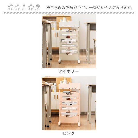ファイルワゴン キャスター付き デスク収納 【ピンク】