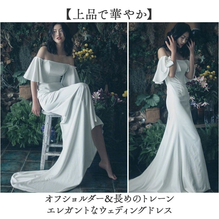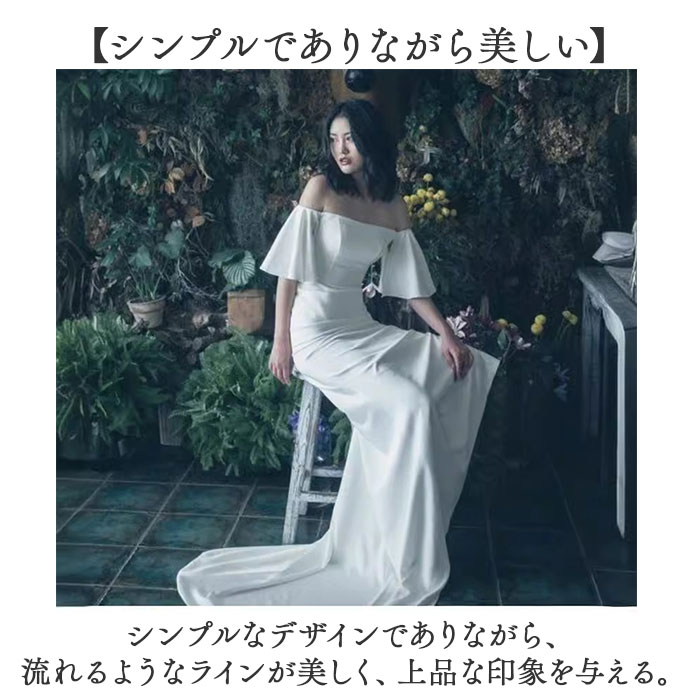 | 商品説明 | 【上品で華やか】オフショルダー&長めのトレーン エレガントなウェディングドレス【背面デザイン】オフショルダーデザインで、華やかな印象を与える。【エレガントなトレーン】裾のトレーンデザインが、歩くたびにエレガントに広がり、華やかな雰囲気を演出。【シンプルでありながら美しい】シンプルなデザインでありながら、流れるようなラインが美しく、上品な印象を与える。【高品質なポリエステル素材】ポリエステル素材で、軽やかで動きやすく、長時間着ていても快適。【ショルダーストラップつき】綺麗めに着たいときは内側に隠して、ズレ落ちが心配な時は肩にかけて着られる。ゴム入りショルダーストラップつき |