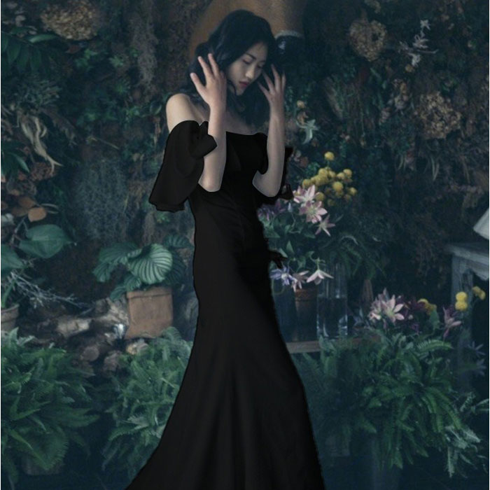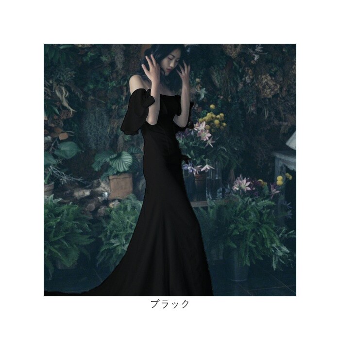 ウェディングドレス フレア袖 マーメイド【ブラック】【XLサイズ】