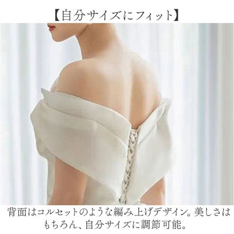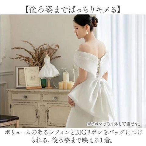 | 商品説明 | 【BIGリボンで華やかさUP♪】美デコルテで上品に仕上げる「ウェディングドレス オフショルダー」が登場。【こなれた印象のオフショルタイプ】背中やデコルテを美しく魅せる、オフショルデザインが人気の秘密。定番だけど今っぽい♪【後ろ姿までばっちりキメる】ボリュームのあるシフォンとBIGリボンをバッグにつけられる。後ろ姿まで映える1着。※リボンは取り外し可能です。【そのまま着られる作り】バストをしっかり支える、パットつき仕様。そのまま着られるからお着換えも簡単。【自分サイズにフィット】背面はコルセットのような編み上げデザイン。美しさはもちろん、自分サイズに調節可能。【マーメードラインでスタイルUP】ウエストやヒップをバランス良くみせる、マーメードシルエットを採用。大人の魅力たっぷり。【お披露目会や前撮り・後撮りに】挙式後のパーティ、屋外での挙式、ウェディングフォトにオススメなオールホワイトのドレス。 |