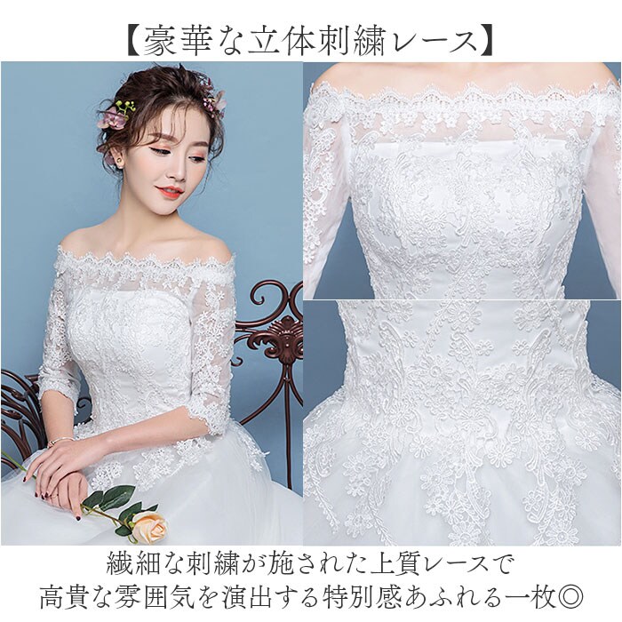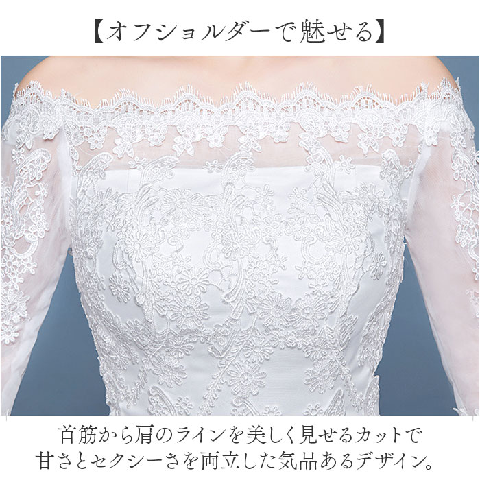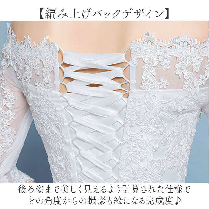 | 商品説明 | 【夢を叶える特別な一着】豪華レースと優美なシルエットで最高の瞬間を演出!【オフショルダーで魅せる】首筋から肩のラインを美しく見せるカットで甘さとセクシーさを両立した気品あるデザイン。【豪華な立体刺繍レース】繊細な刺繍が施された上質レースで高貴な雰囲気を演出する特別感あふれる一枚◎【編み上げバックデザイン】後ろ姿まで美しく見えるよう計算された仕様でどの角度からの撮影も絵になる完成度♪【上品な袖丈】二の腕をさりげなくカバーしながら優雅な印象を与える絶妙な袖丈で洗練された着こなし〇 |