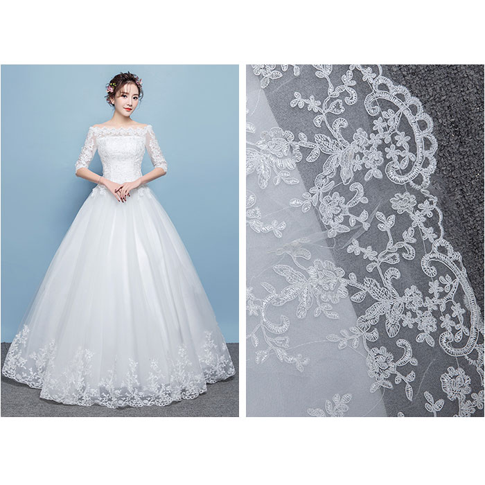 ウェディングドレス 編み上げタイプ 七分袖【ホワイト】【Mサイズ】