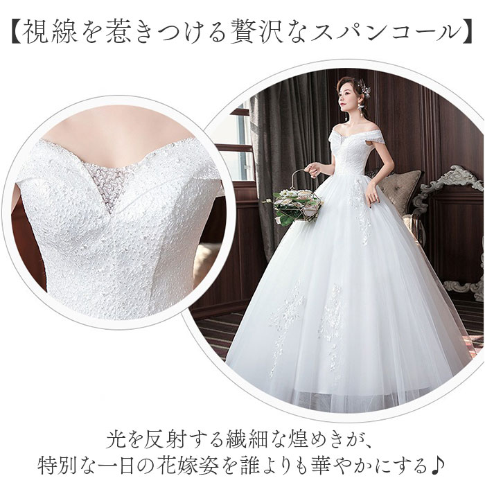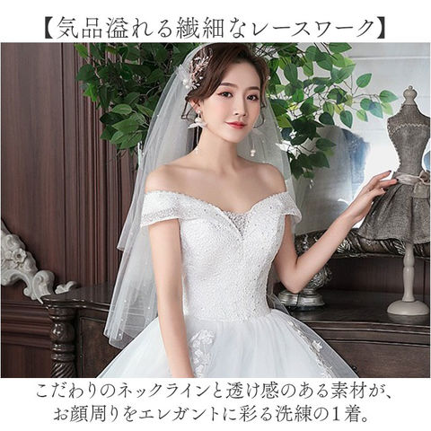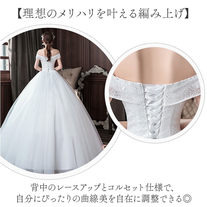 ウェディングドレス 編み上げタイプ Aライン【ホワイト】【Mサイズ】