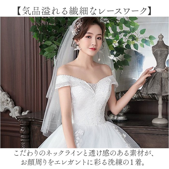 | 商品説明 | 【煌めくレースが主役の最愛ドレス】 スパンコールと繊細なレースが織りなす輝き。運命の一日を美しく彩るAラインドレス。【理想のメリハリを叶える編み上げ】 背中のレースアップとコルセット仕様で、自分にぴったりの曲線美を自在に調整できる◎【瞬時にスタイルアップするAライン】 腰位置を高く見せるシルエットが、気になる下半身を自然にカバーしてくれる!【視線を惹きつける贅沢なスパンコール】 光を反射する繊細な煌めきが、特別な一日の花嫁姿を誰よりも華やかにする♪【気品溢れる繊細なレースワーク】 こだわりのネックラインと透け感のある素材が、お顔周りをエレガントに彩る洗練の1着。【軽やかな着心地で動く姿も美しく】 二次会やロケーション撮影でも疲れにくく快適に過ごせる〇 |