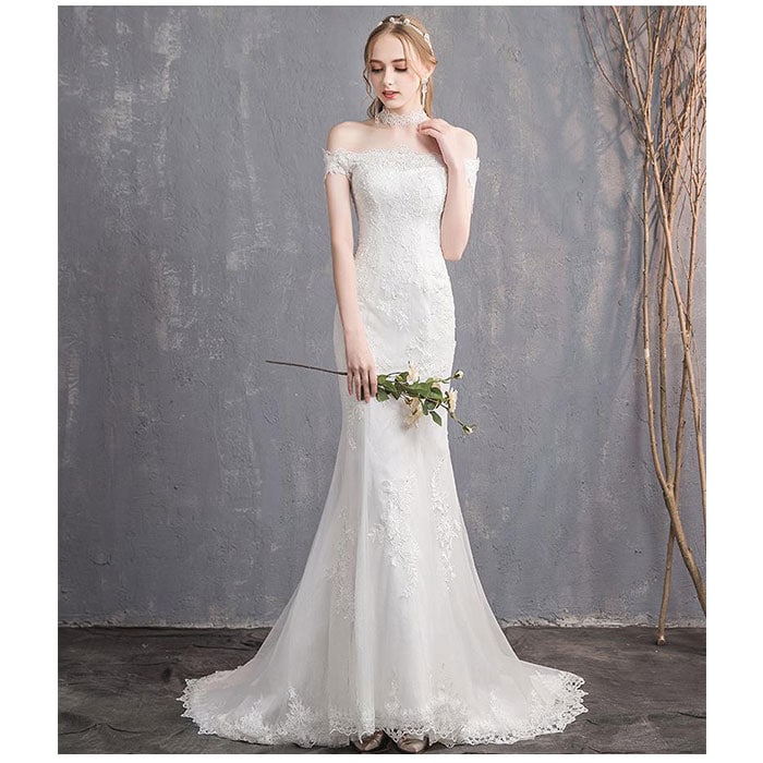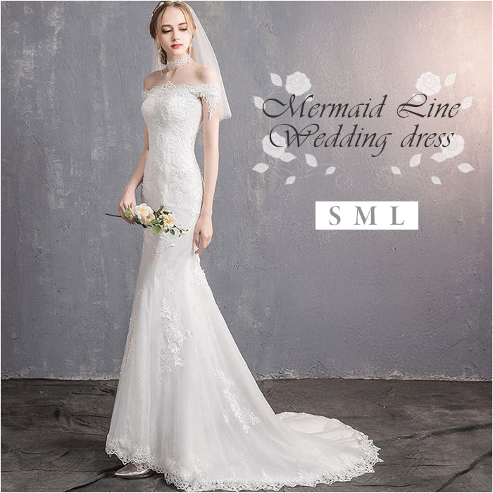 ウェディングドレス マーメイドライン トレーン【ホワイト】【Mサイズ】