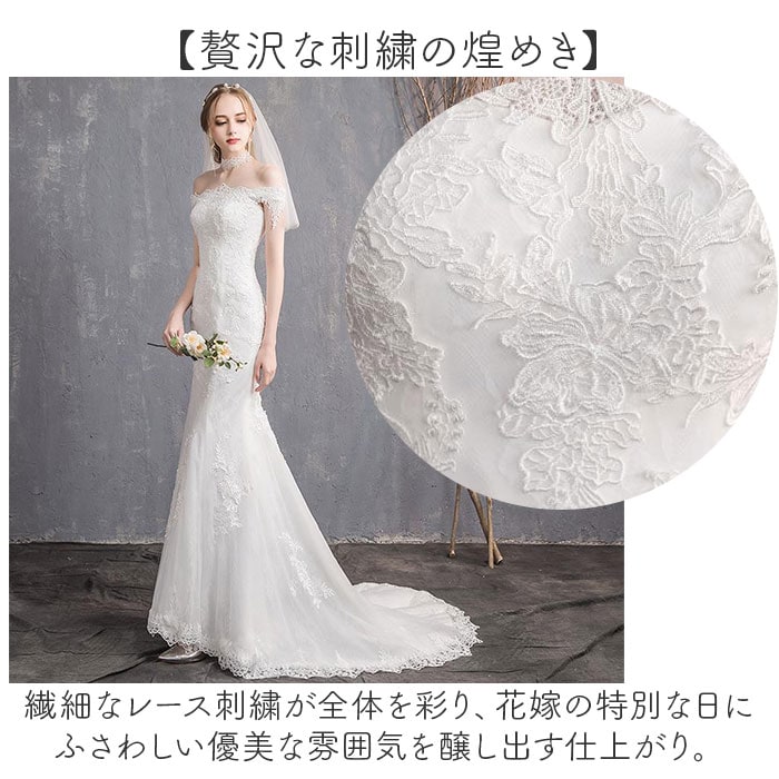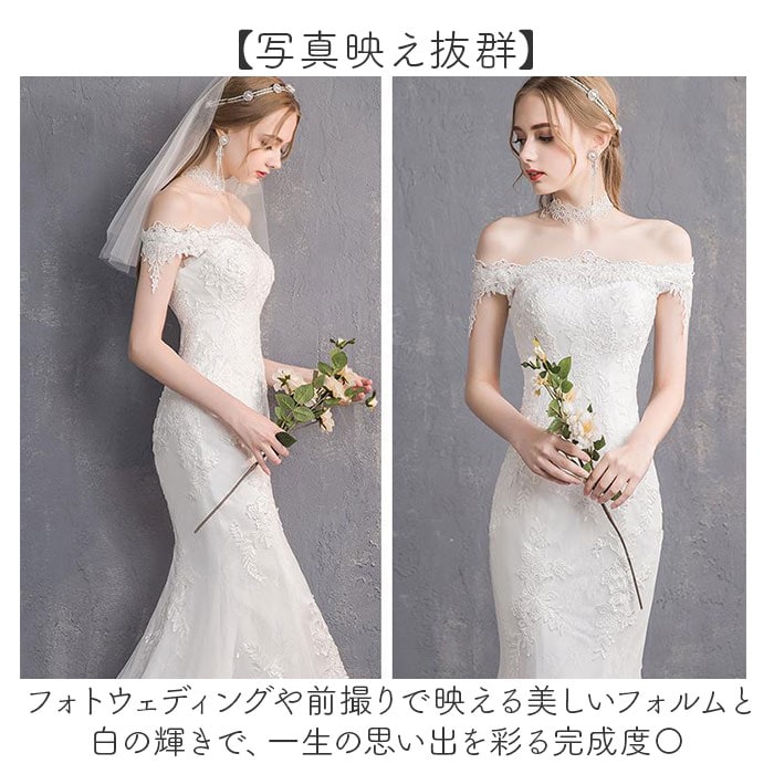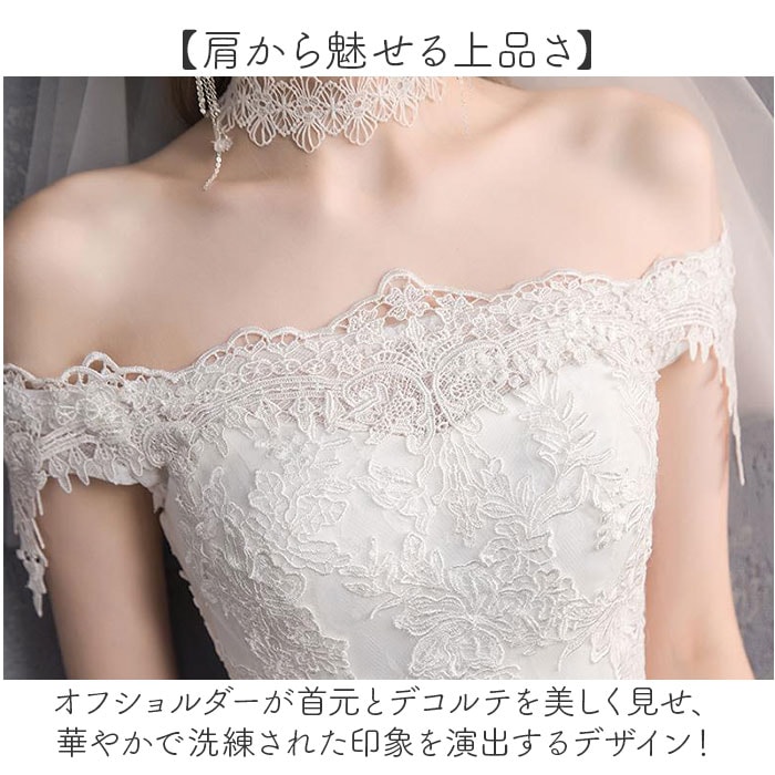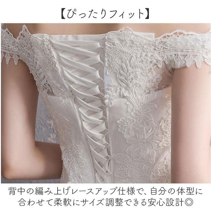 | 商品説明 | 【純白に輝く特別な一日】繊細なレースが彩る、優雅なマーメイドラインのウェディングドレス。【曲線美を引き出す】マーメイドラインが女性らしいボディラインを際立たせ、スタイルアップを実現する優雅な一着♪【ぴったりフィット】背中の編み上げレースアップ仕様で、自分の体型に合わせて柔軟にサイズ調整できる安心設計◎【肩から魅せる上品さ】オフショルダーが首元とデコルテを美しく見せ、華やかで洗練された印象を演出するデザイン!【贅沢な刺繍の煌めき】繊細なレース刺繍が全体を彩り、花嫁の特別な日にふさわしい優美な雰囲気を醸し出す仕上がり。【幅広い用途に対応】結婚式本番はもちろん二次会や前撮りなど、多彩なブライダルシーンで活躍する実用性の高さ〇【エレガントなトレーン】後ろに流れるトレーンが歩くたびに揺れ、ドラマティックで格調高い雰囲気を演出する豪華仕様♪【ウエスト強調で美形】立体的な裁断技術がウエストラインをしっかり強調し、メリハリのある女性らしいシルエットを実現◎【写真映え抜群】フォトウェディングや前撮りで映える美しいフォルムと白の輝きで、一生の思い出を彩る完成度〇 |