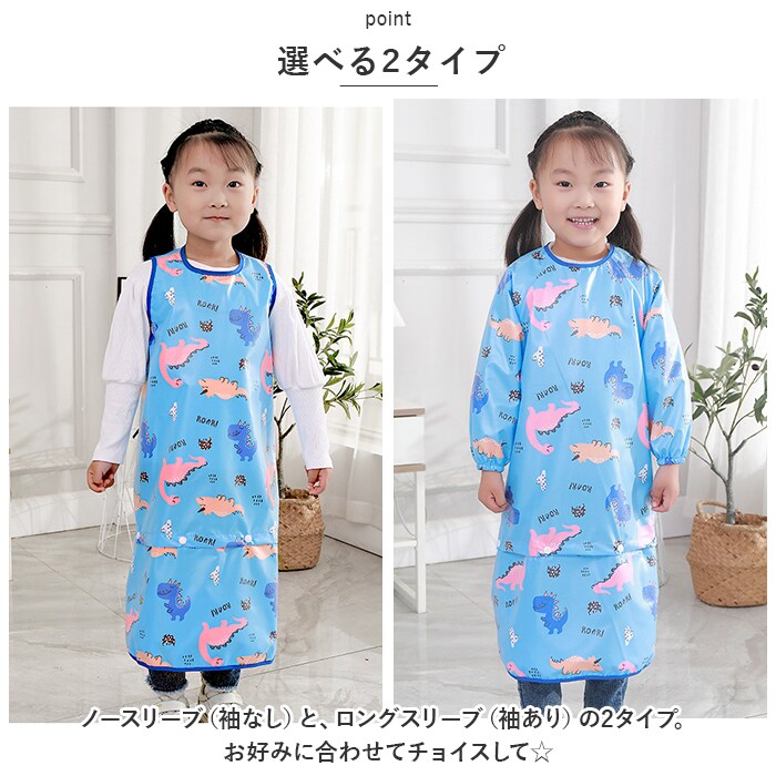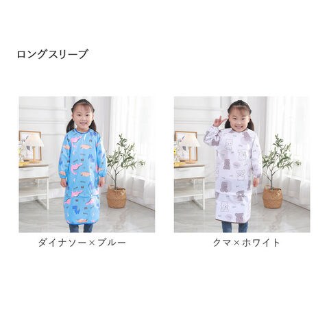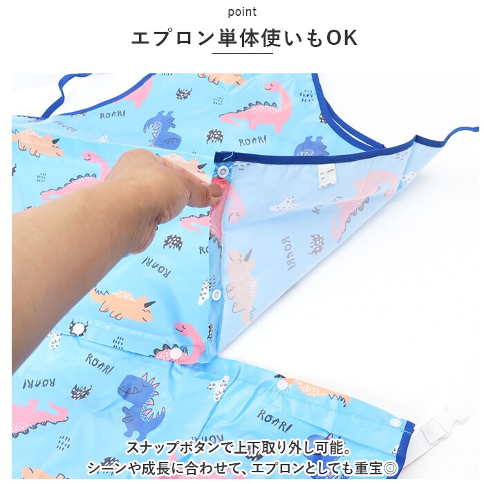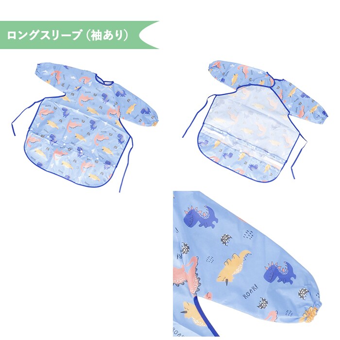 テーブルクロス一体 キッズ 食事エプロン yxykbib5174【ダイナソー×ブルー】【ロングスリーブ】