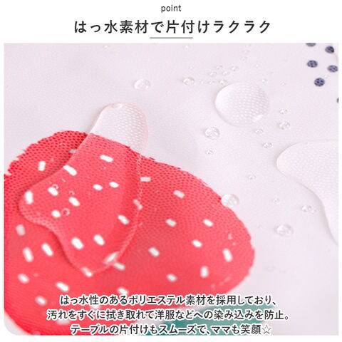 | 商品説明 | 食べこぼしの汚れからしっかり守る、テーブルクロス一体型のキッズ食事エプロンが登場。【いつでもどこでも手軽に使える!】エプロンを首元の面ファスナーで装着し、紐とバックルベルトでイスに固定するだけ!ドローコードでフィット感も調節でき、サッと使える!【エプロン&テーブルクロス一体型】食べこぼしが多いテーブルとの間もしっかりカバー。自分で食べたい!という時期のお子さまにぴったり。【はっ水素材で片付けラクラク】はっ水性のあるポリエステル素材を採用しており、汚れをすぐに拭き取れて洋服などへの染み込みを防止。テーブルの片付けもスムーズで、ママも笑顔☆【持ち運びに便利】折りたためばコンパクトサイズに。お出かけ用のバッグにかさばることなく、忍ばせられるのが嬉しい!【エプロン単体使いもOK】スナップボタンで上下取り外し可能。シーンや成長に合わせて、エプロンとしても重宝◎【選べる2タイプ】ノースリーブ(袖なし)と、ロングスリーブ(袖あり)の2タイプ。お好みに合わせてチョイスして☆【キュートでポップなデザイン】アニマルやフルーツ柄をプリントした可愛らしいデザイン。毎日のお食事が楽しくなりそう♪ |