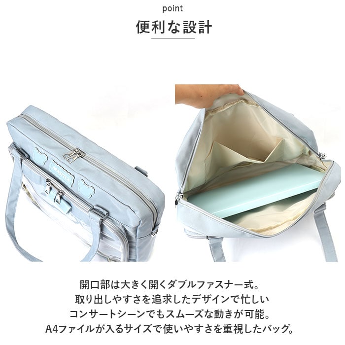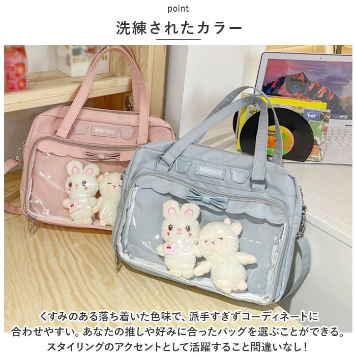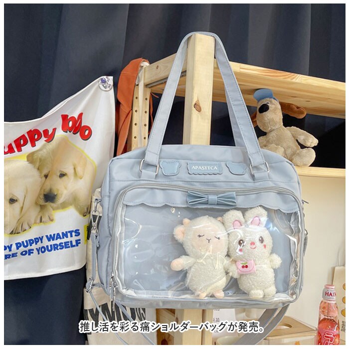| 商品説明 | 推し活を彩る痛ショルダーバッグが発売。【便利な設計】開口部は大きく開くダブルファスナー式。取り出しやすさを追求したデザインで忙しいコンサートシーンでもスムーズな動きが可能。A4ファイルが入るサイズで使いやすさを重視したバッグ。【アレンジ自在のクリア窓付き】ファスナーがコの字型に大きく開く、前面のクリアウィンドウがこの痛バッグの特徴!大きめのぬいぐるみストラップも入る仕様に。【普段使いにも】裏返せばシンプルなバッグに変身。その場のムードに合わせてスタイルを変えることができる、2つの顔を持つショルダーバッグ。【2WAY仕様】取り外し可能のショルダーつき。手持ちとショルダー、2つのスタイルで楽しむことができる。さらに長めの持ち手で肩掛けしやすい!【洗練されたカラー】くすみのある落ち着いた色味で、派手すぎずコーディネートに合わせやすい。あなたの推しや好みに合ったバッグを選ぶことができる。スタイリングのアクセントとして活躍すること間違いなし!【ポケット仕様】[内側]オープンポケット×1[前面]クリア窓仕様ファスナーポケット×1 |