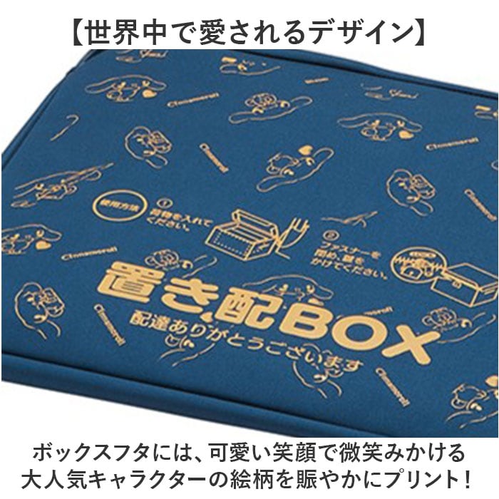 | 商品説明 | 【荷物の受け取りを便利にサポート】お馴染みのキャラクターたちが大切な荷物を見張り番♪「置き配ボックス(Mサイズ)」が新登場!【お留守中に荷物が届いても大丈夫】お出掛け中に届いた宅配便の荷物を安心してしまえる!可愛いらしくて丈夫な保管用ボックス。【大きめ荷物もすっぽり入る!】ダンボール箱100サイズ(長さ・幅・深さ、3辺の外寸合計100cm以内)に対応した約55Lの大容量設計。【ボックスがしっかり自立】4つの側面に芯材パネルを内蔵しているので、ボックスが型崩れせず内側の荷物をしっかりガード。【ダブルクローズ方式でピタッと密閉】ファスナー×面ファスナーのダブルクローズ方式で開口部を密閉。雨の吹込みなどから荷物を守る♪※ボックス生地表面にははっ水加工が施されておりますが、完全防水仕様ではありません。台風など雨風が強い時には使用しないでください。【錠がセットできるダブルファスナー】ダブルファスナーの引き手同士を南京錠で施錠することができるので、セキュリティ面でも安心。※宅配業者の方が分かるように、ファスナーの片側に錠前を開いた状態で掛けておくと便利。※ファスナー用の錠前は付属しておりません。ファスナーに取り付けできる直径4mm以内のものをご購入ください。【暗い場所でもパッと目に入る】夜間の配達時でもボックスがパッとひと目で見つかる!正面、側面のフラップには反射板付き。【ロック式ワイヤーで盗難防止!】付属のロック式ワイヤーを背面ループに通し、玄関のポールなどに固定すれば、盗難防止に効果的。※固定用ワイヤー用のダイヤルキーの使用方法は付属の説明書をご確認ください。【アルミシートで保冷効果がUP】ボックス内側は、食品などの荷物の一時保管にも安心な、保冷効果のあるアルミ蒸着シート仕上げ。【マルチに使えるクリアポット】宅配業者さんから受け取る納品書や、置き配ボックスの使い方メモを入れておける透明ポケット付き。 |