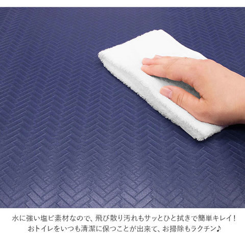 | 注意点 | マットは床のお掃除に使う洗剤、ワックス、水等をよく拭き取り、乾燥させてからご使用ください。長期間敷いたままでご使用されますと、床材が変色したり密着等することがあります。(特に新築の塩ビ床やワックス掛け後の床)週に2回程度は床面を拭いたり、取り外す等してご使用ください。マットに飛び乗ったり、床面が濡れていると滑る場合がありますのでご注意ください。マットに水等をこぼした場合は滑りやすくなりますので、ただちに拭き取ってください。洗剤や薬品を使ってお掃除する場合は、マットを取り外してください。素材特有のにおいがあります。気になる場合は、風通しの良い場所で1~2日、陰干ししてください。本品はトイレマットです。本来の目的以外のご使用はお避け下さい。本品は洗濯できません。汚れた場合は固く絞った布で水拭きしてください。汚れのひどい場合は、中性洗剤を含ませた布で拭きとり、最後に固く絞った布で水拭きをし、風通しのよい場所で陰干ししてください。カメラやモニターの性質により、画像と実物の色の違いがある場合がございますのでご理解願います。 |