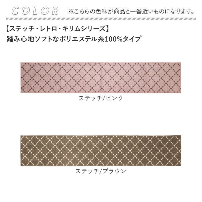 キッチンマット 45×240cm【ステッチ/ブラウン】
