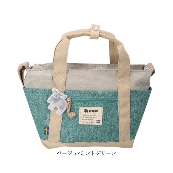 moz モズ 10ポケット2wayショルダー【ベージュxミントグリーン】