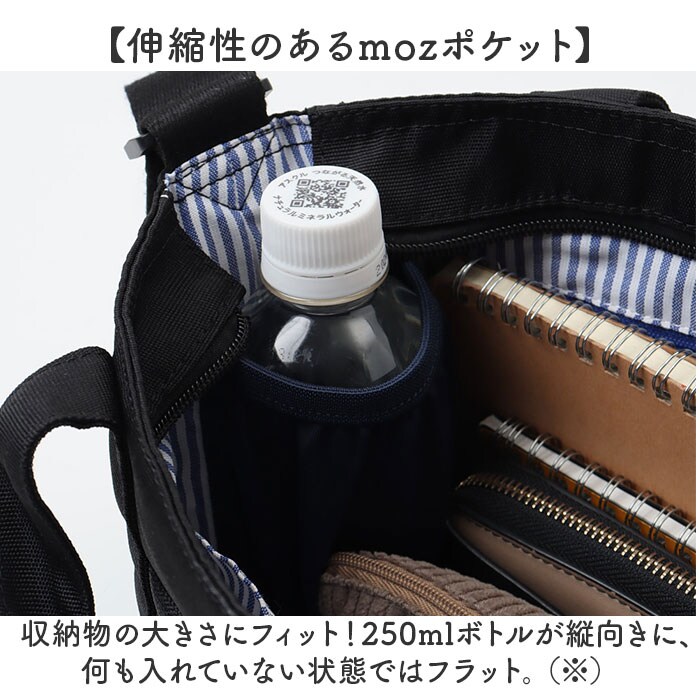 | 商品説明 | 【デイリーに活躍するお出掛けの相棒】・10ポケット付きで片付け上手◎北欧ブランド”moz”の10ポケット2wayショルダー。【アクセントになる切り替えデザイン】シンプルながら、メランジの切り替えが印象的!持つ人を選ばない、ナチュラルテイスト。(※1)メランジとは、生地が2色以上の霜降り調に見える生地のこと。【お好みに合わせてスタイルチェンジ】ハンドルをまとめて手持ちで。ショルダーの長さを調節し、肩掛けや斜め掛けも自在な2way。(※2)ハンドルは、スナップボタンベルトでまとめることが可能です。【開閉スムーズ、安心の天ファスナーx】ガバっと開いて取り出しやすく、ファスナーを閉じれば中身の飛び出しをガード。【A5対応ですっきりひとまとめ】A5がすっぽり。マチを設けて自立、ポーチや長財布等、必要な物を収納できる容量約4.5L。【伸縮性のあるmozポケット】収納物の大きさにフィット!250mlボトルが縦向きに、何も入れていない状態ではフラット。(※)ボトルの他、折りたたみ傘やペンケースを入れることもできます。【充実のポケット付きで迷子知らず】mozポケットの他、9個のポケットを装備。定位置をキープできて、小物を探す手間が不要。【爽やかキュート!こだわりの内生地】内生地は明るいストライプ柄。可愛いだけでなく、中身を確認しやすいつくり。【暗闇での視認性をアップ】暗闇でヘッドライトの光を反射する、リフレクターチャーム付き☆夜間や視界の悪い日にも。【お気に入りを選べるカラー】ベーシックや差し色になるカラーをラインナップ。フロントにブランドロゴを入れたタグ付き。【ポケット仕様】内側:mozポケット(ボトルポケット)×1、ファスナーポケット×1、オープンポケット×2前面:ファスナーポケット×1、オープンポケット×2背面:オープンポケット×3 |