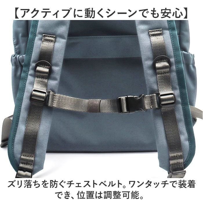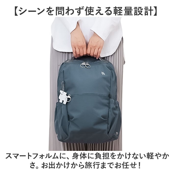 | 商品説明 | 【オールラウンドな頼れる相棒】どんなスタイルにもマッチ!北欧ブランド”moz”の「撥水バックパック」。【シーンを問わず使える軽量設計】スマートフォルムに、身体に負担をかけない軽やかさ。お出かけから旅行までお任せ!【突然の雨にも慌てない撥水性】水滴や汚れをサッと弾く、撥水加工を施した高密度ポリエステル素材。お手入れも拭き取るだけ。(※1)完全防水ではありません。【両手を自由に使えてノンストレス】程よくクッション性のある背面&ショルダー。サッと背負えてハンズフリー!【アクティブに動くシーンでも安心】ズリ落ちを防ぐチェストベルト。ワンタッチで装着でき、位置は調整可能。【キャリーオンできて移動もラクラク】背面のベルトを、キャリーのハンドルに通せるキャリーオンタイプ。【ガバッと開くダブルファスナー】指を掛けて開閉できる、リング型引手。ファスナーを閉じれば中身の飛び出しもガード。【A4もノートPCもすっぽり収納】A4OK、13インチPCが収まるクッションポケット付。荷物が1つにまとまる容量約11L◎【伸縮性のあるmozポケット】収納物の大きさにフィット!500mlボトルが縦向きに、何も入れていない状態ではフラット。(※2)mozポケットとはブランドキャラクター「エルク」のもつ柔らかなイメージに合わせて、内部に伸縮する生地を採用したポケットのことです。【サクッと取り出せて迷子知らず】ファスナーを隠した前面ポケット等、複数のポケットとDカン。小物を探す手間が不要。【爽やかキュート!こだわりの内生地】内生地は明るいストライプ柄。可愛いだけでなく、中身を確認しやすいつくり。【アクセントになるリフレクター】エルクモチーフのリフレクターチャーム。暗闇でヘッドライトの光を反射、視認性をアップ。【お揃いで持てるユニセックス仕様】年代や性別を問わないシンプルなデザイン。エルクの刺繍、引手の刻印がアクセント☆ |