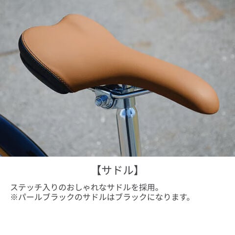 クロスバイクと聞くとどうしてもスポーティーな印象を持ってしまう方が多いと思います。しかしこの自転車は、肩肘張らずに気楽にのっていただける一台に仕上がっています。サイドが飴色のタイヤに合わせてセレクトされたブラウン系のパーツたちは(※パールブラックはブラックパーツ仕様です。)、あたたかく、どこか懐かしい雰囲気を醸し出しています。毎日の通勤から週末のちょっとしたサイクリングまで、木漏れ日の良く似合う落ち着いたクロスバイクです。