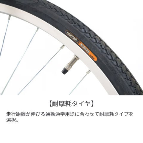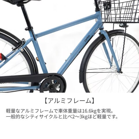 シティサイクル、ママチャリタイプに抵抗がある方に向けておすすめしたいのがこの「cyma weekCross」です。アルミフレームを採用し車体が軽く軽快な走りを実現しています。機能としてはカバンを入れやすいワイドな前かごを装備し、LEDオートライト仕様で夜道も安心。毎日の使用を想定し長持ちする耐摩耗タイヤやブレーキには超寿命で音鳴りしにくく雨でも制動力が落ちにくいローラーブレーキを選択しました。メンテナンス時にも部品の取り扱いが多く安心できる一般的なシティサイクル規格の27インチ仕様を採用しています。