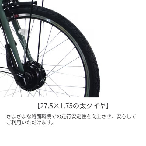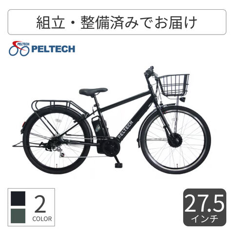 PELTECHの+plusライン!これまでに販売してきた商品のフィードバックを基に、改良を重ねた新モデルです。見た目はクロスバイクでありながら珍しい両立スタンド、前カゴ、後キャリア、泥除けも付いているので通勤・通学・街乗り様々な場面でご利用いただけます。またPELTECH初のUSBポート付き手元スイッチを採用、スマートフォンへの充電が可能になりました。27.5インチ1.75サイズの太タイヤ採用しているので街乗りで段差があっても衝撃を吸収してくれるので安定した走行が可能です。