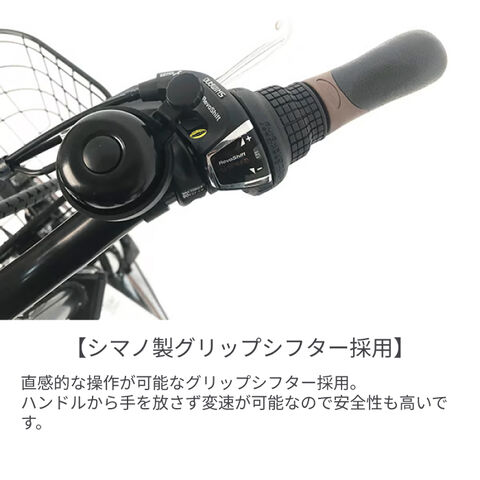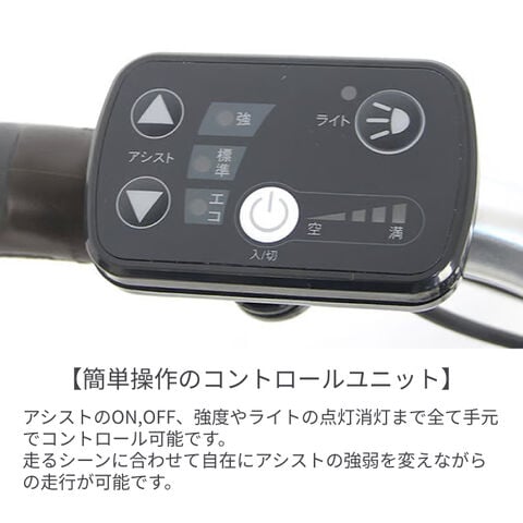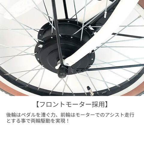 日本電産製前モーターを搭載したオリジナルのアシストシステム!平坦から坂道まで3モードでしっかりアシストしてくれる1台です!お買い物や通勤通学にも便利な前カゴや駐輪時の施錠が容易な後輪錠、フロントLEDオートライト、シマノ製外装6段変速を装備。20インチの小径タイヤは小回りが利きく一方、坂道や長距離を走るのは難しいですが、この自転車はモーターのアシストで弱点を解決!力の弱い女性の方でも安心快適に乗る事が出来ます。
