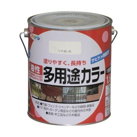 アサヒペン 油性多用途カラー 1.6L ツヤ消し白 1点
