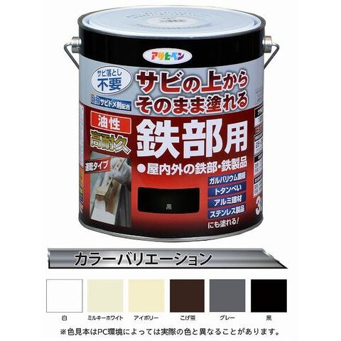 アサヒペン 油性高耐久鉄部用 3L 黒 1点