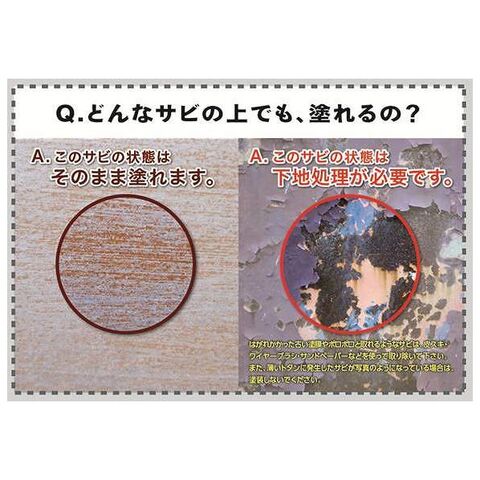 ●特徴:特殊強力サビドメ剤がサビの進行を抑え、長期間鉄部をサビから保護します。