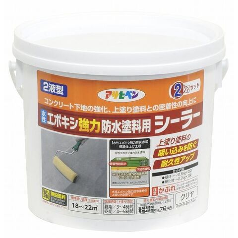 アサヒペン 水性2液型エポキシ強力防水塗料用シーラー 2Kgセット クリヤ 1缶
