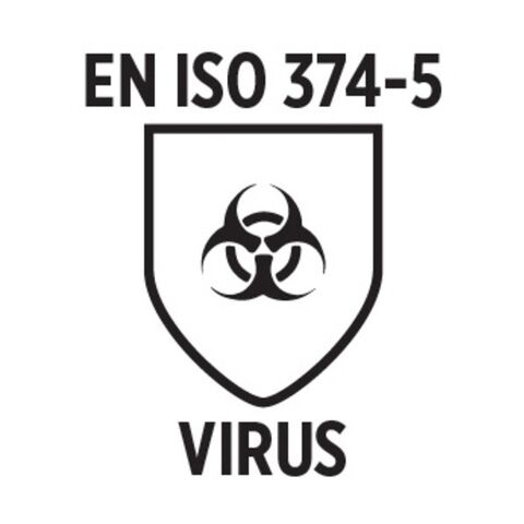 ・左右兼用・EN388:2016規格:耐摩耗レベル2、耐切創レベル0、耐引裂レベル0、耐突刺レベル0、EN ISO耐切創レベルX・EN374:2016規格:JKLOPST・ASTM F 739(JIS T 8116)試験データあり・AQL(合格品質水準):0.65・EN ISO 374-5 VIRUS規格品(抗ウイルス性能)