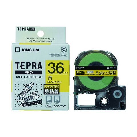 キングジム テプラPROテ-プ強粘着タイプ黄/黒文字 黄 黒文字 SC36YW