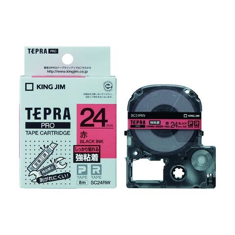 キングジム テプラPROテープ強粘着ラベル 赤 黒文字 SC24RW