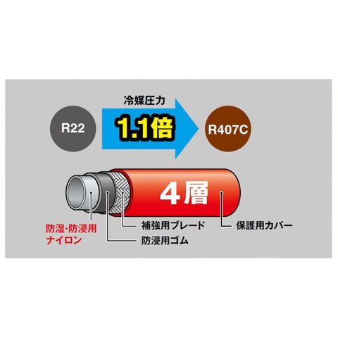 ・防浸用のゴム層と特殊ナイロン層の4層二重防護で、CFC?HCFC?HFCに最適。