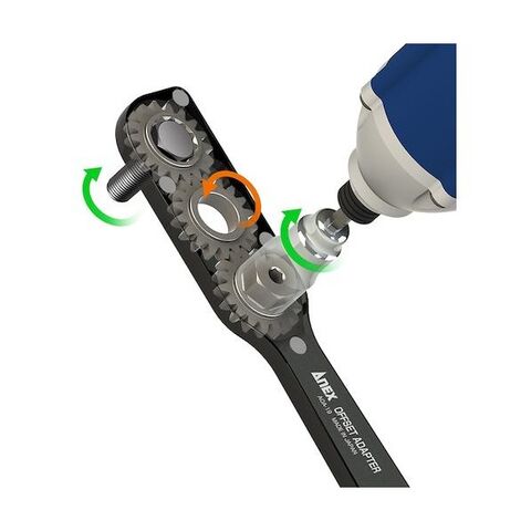 ●オフセットアダプターでレンチの手締め作業を電動化。