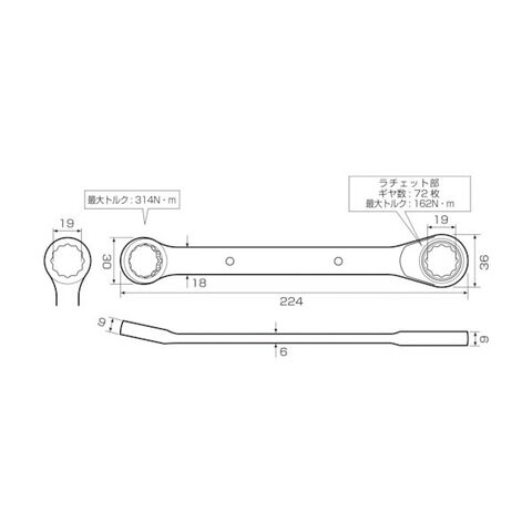 ラチェットレンチ(AOA-19RW)、