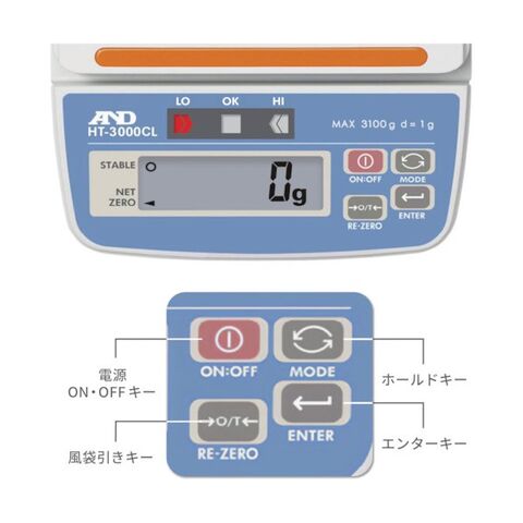 A&D A&D コンパレータライトつきデジタルはかり HT3000CL 195 x 136 x 47 mm HT3000CL 1点